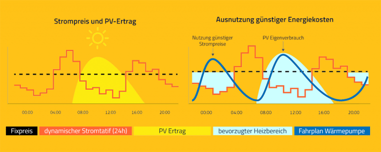 Bei hoher Verfügbarkeit von Wind- und Solarenergie sinken die Strompreise, was sich in variablen Tarifen widerspiegelt. KI-basierte gesamtheitliche Energieoptimierung nutzt diese Dynamik und berücksichtigt zusätzlich Effizienz der Wärmepumpe sowie den PV-Ertrag. So entsteht ein kostenoptimierter Fahrplan, der Energieverbrauch und Kosten reduziert.