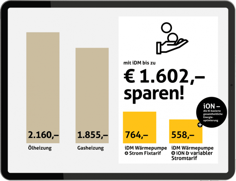 6. iDM Luft-Wasser Wärmepumpe mit PV-Eigenverbrauchsoptimierung – Strompreis: 30,35 c/kWh inkl. Netzentgelte, Steuern und Abgaben.